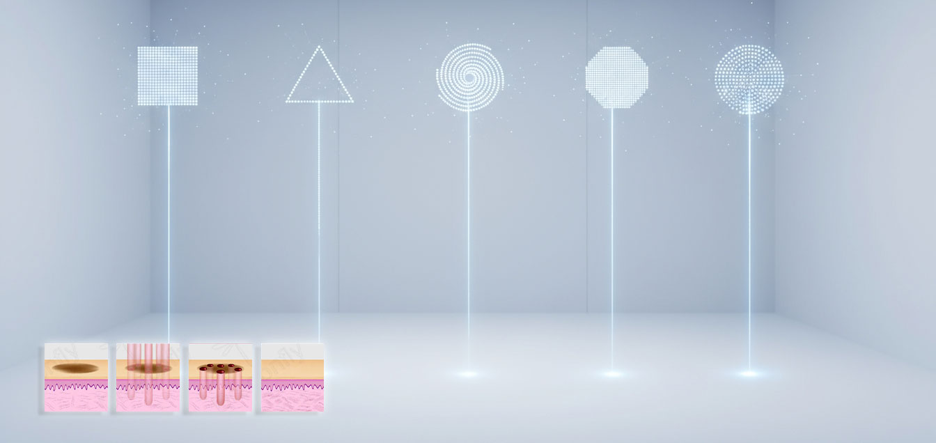 L’appareil offre 7 modes de balayage, permettant d’adapter la forme et l’intensité du faisceau à la zone de traitement spécifique. Cela permet une action précise dans le derme, sans risque d’endommager les tissus environnants.