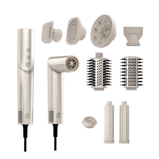 Mais ce n’est pas tout ! Le set inclut deux embouts supplémentaires pour diversifier vos possibilités de coiffage. Et si vos cheveux sont naturellement bouclés, vous ne pouvez pas manquer le diffuseur spécial conçu pour un séchage rapide de la racine jusqu’aux pointes.