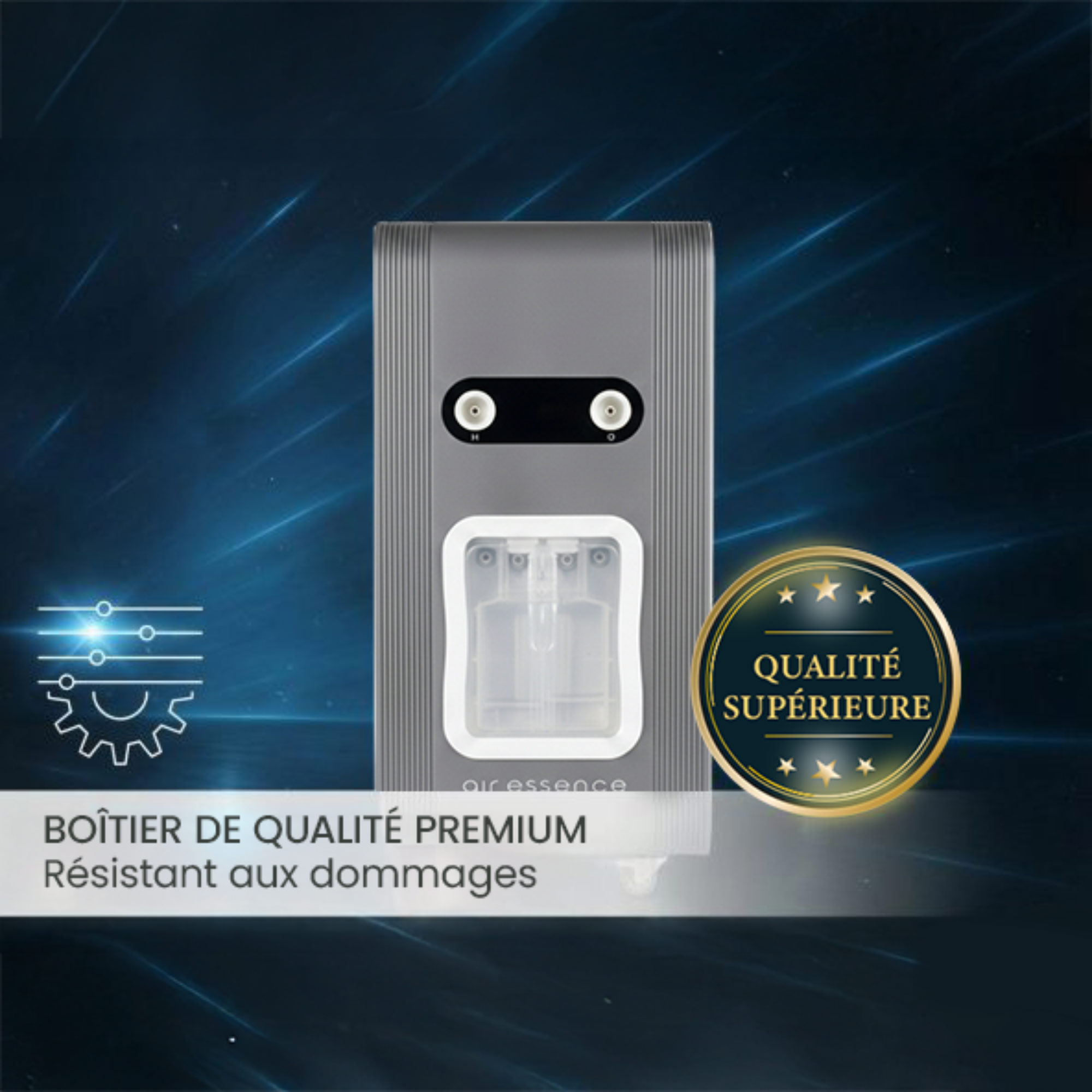 Grâce à sa membrane échangeuse de protons, l’appareil sépare l’hydrogène de l’oxygène avec une précision maximale. Le résultat ? Vous respirez uniquement ce qu’il y a de plus précieux – de l’hydrogène pur et actif, qui favorise la régénération, réduit le stress oxydatif et améliore le bien-être général.
