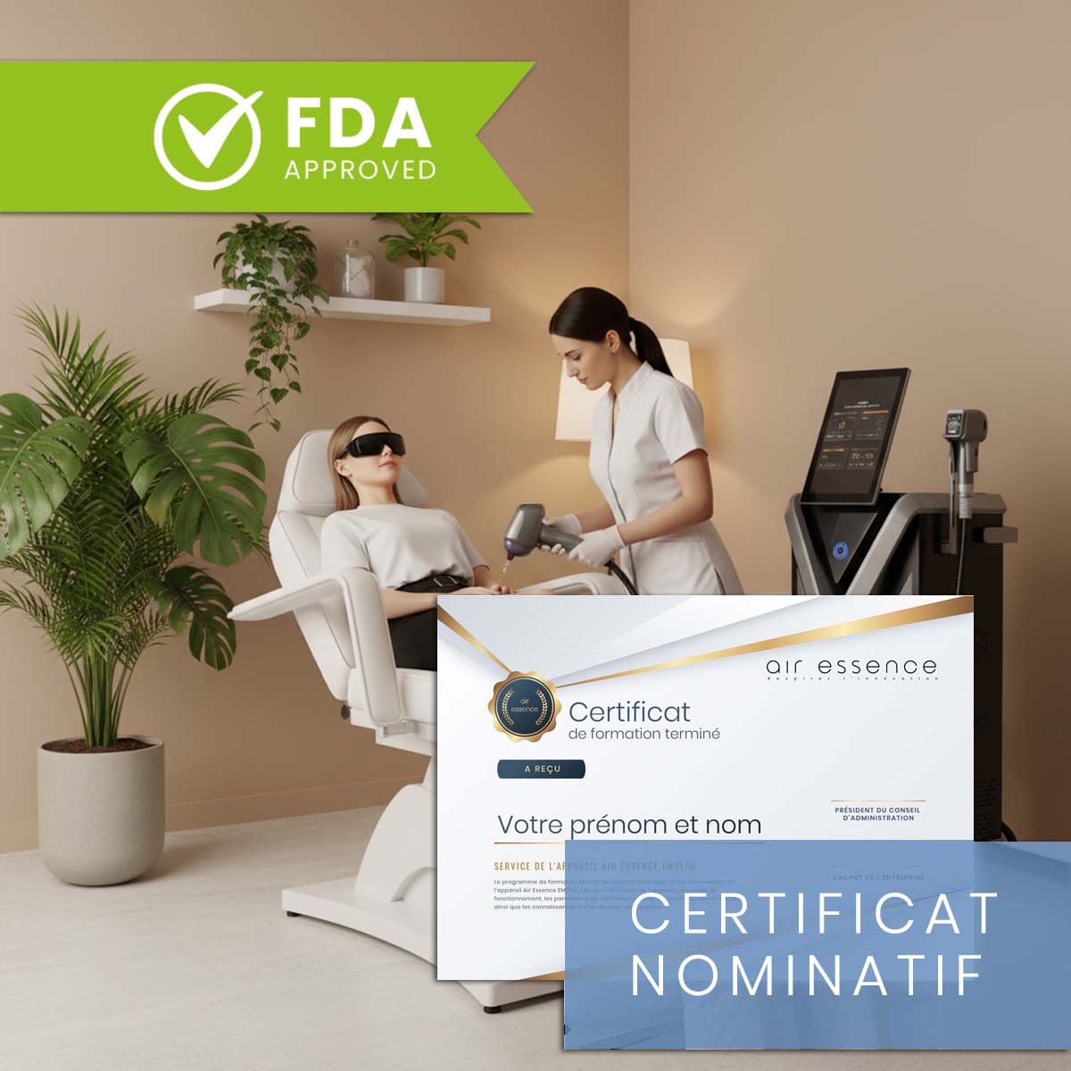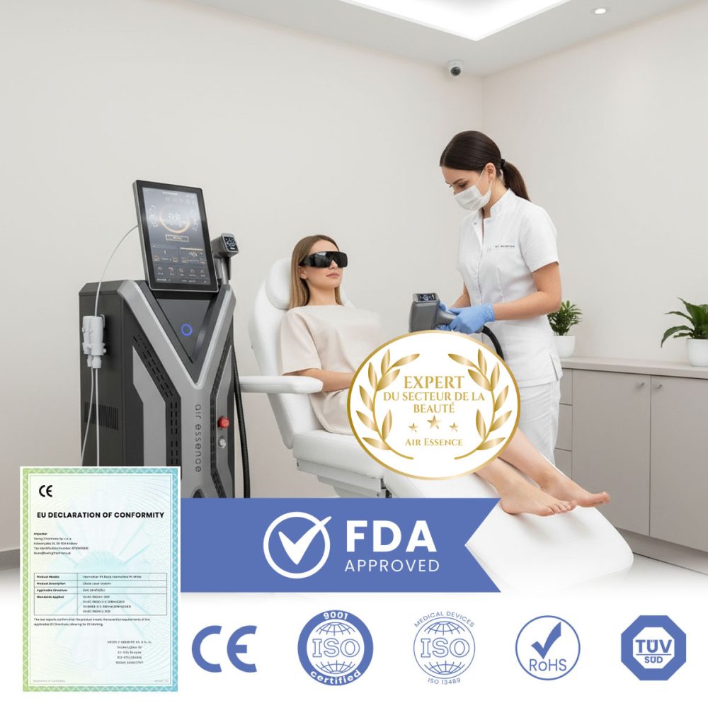 De plus, l’appareil est également certifié par la FDA, vous garantissant que vous investissez dans un équipement éprouvé et approuvé pour une utilisation sur les marchés mondiaux. C’est une garantie de fiabilité, de sécurité pour vos clients et de sérénité dans votre travail quotidien.