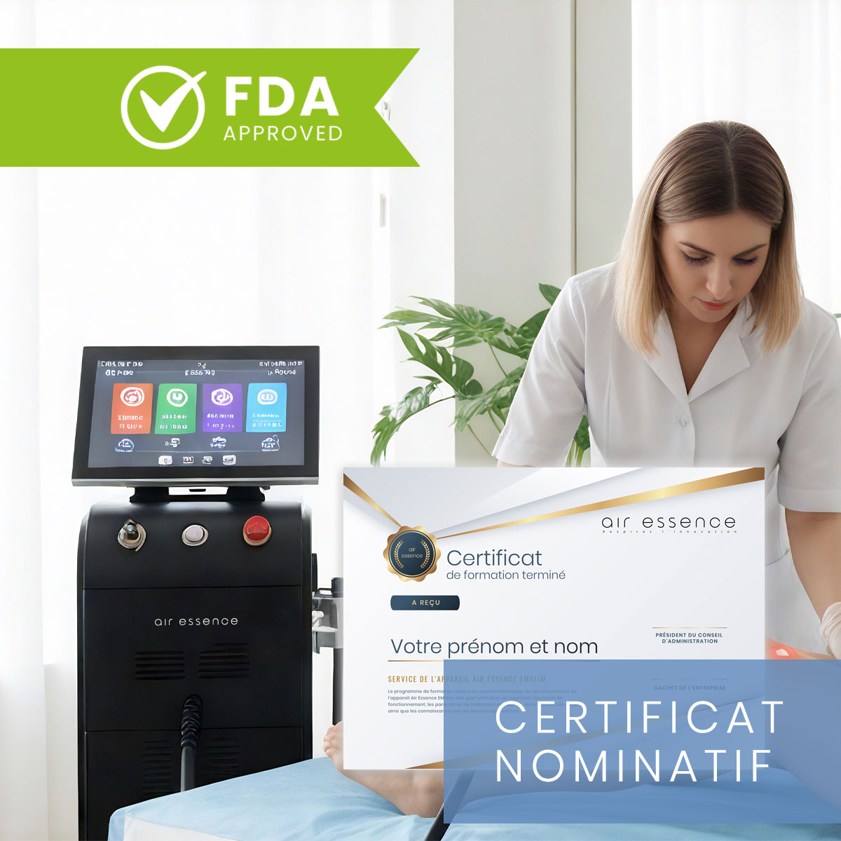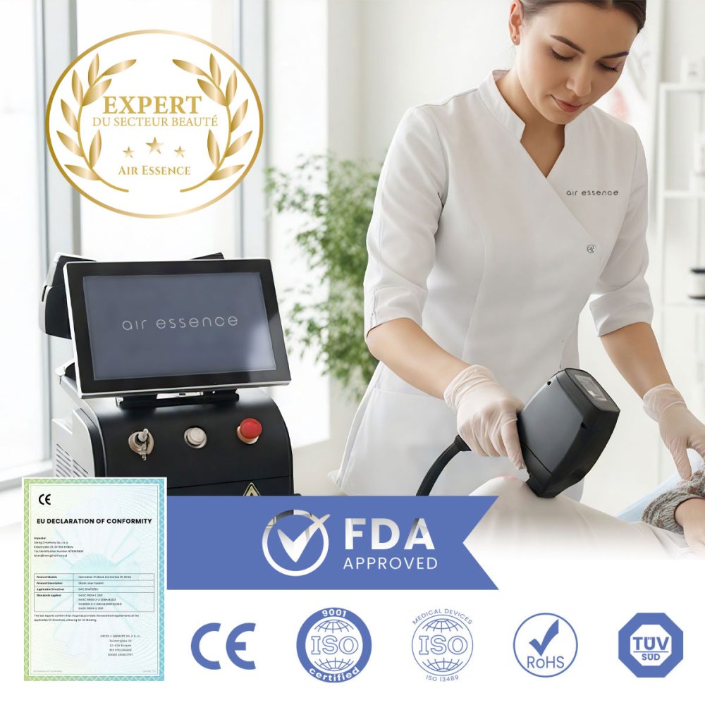 De plus, l’appareil est également certifié par la FDA, vous garantissant que vous investissez dans un équipement éprouvé et approuvé pour une utilisation sur les marchés mondiaux. C’est une garantie de fiabilité, de sécurité pour vos clients et de sérénité dans votre travail quotidien.