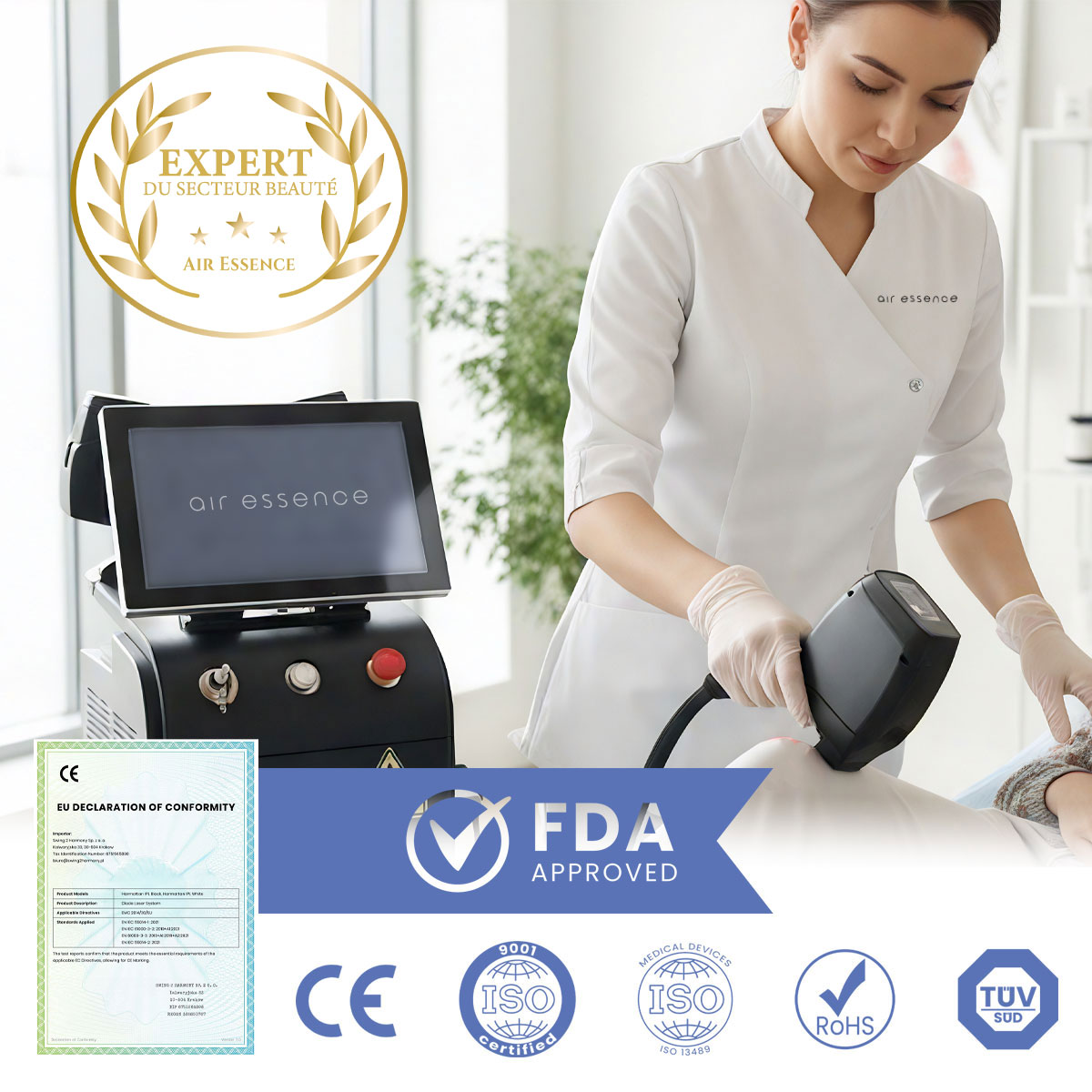 Notre laser esthétique respecte les plus hauts standards de qualité et de sécurité, comme en témoignent les certifications prestigieuses suivantes :