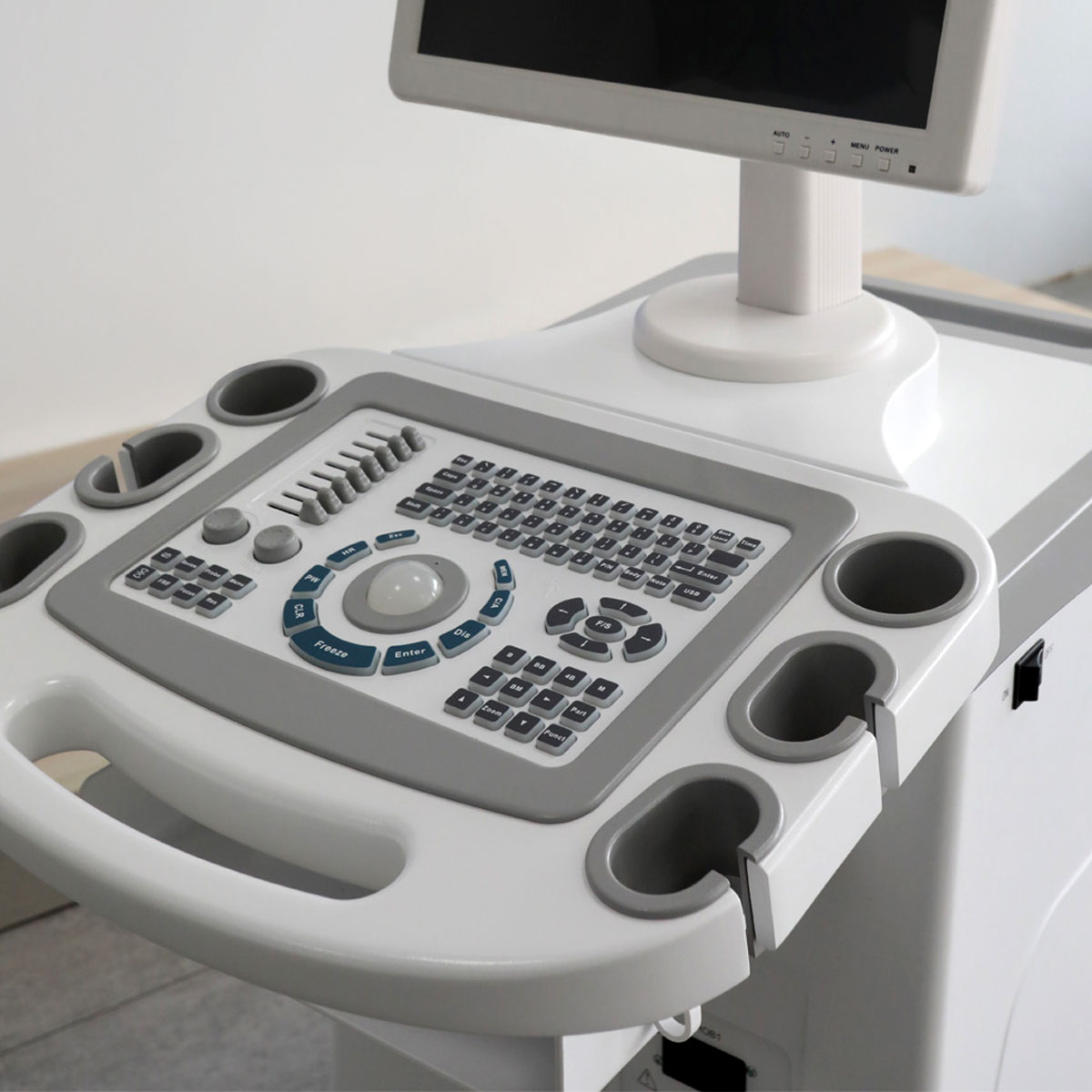 - Type : échographe stationnaire (chariot) noir et blanc