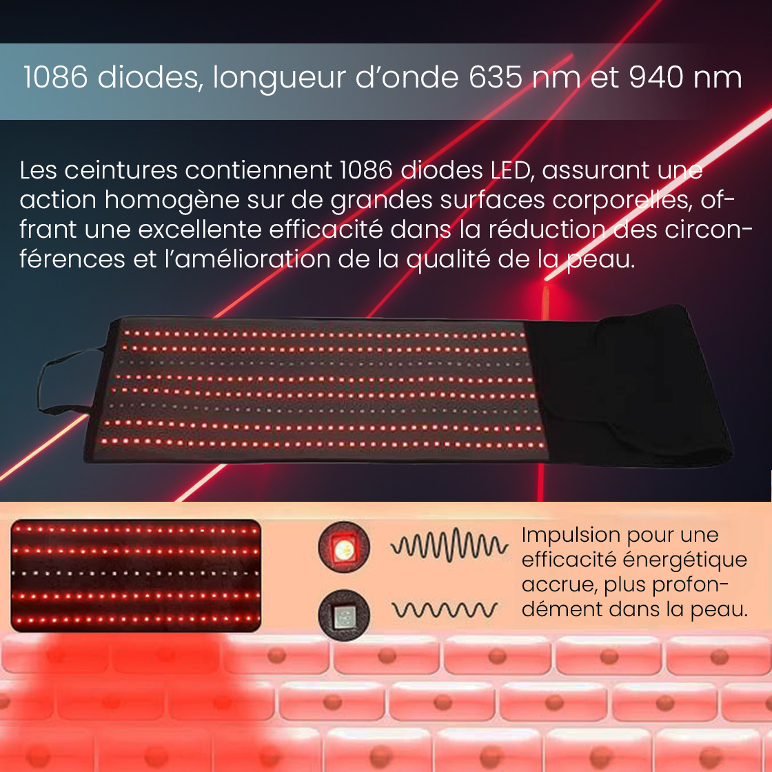 Appareil efficace pour aider à réduire le tour de taille, des hanches et du dos, tout en soulageant les douleurs dorsales et musculaires. Grâce à la technologie lumineuse, les ceintures améliorent la microcirculation et favorisent la relaxation musculaire.