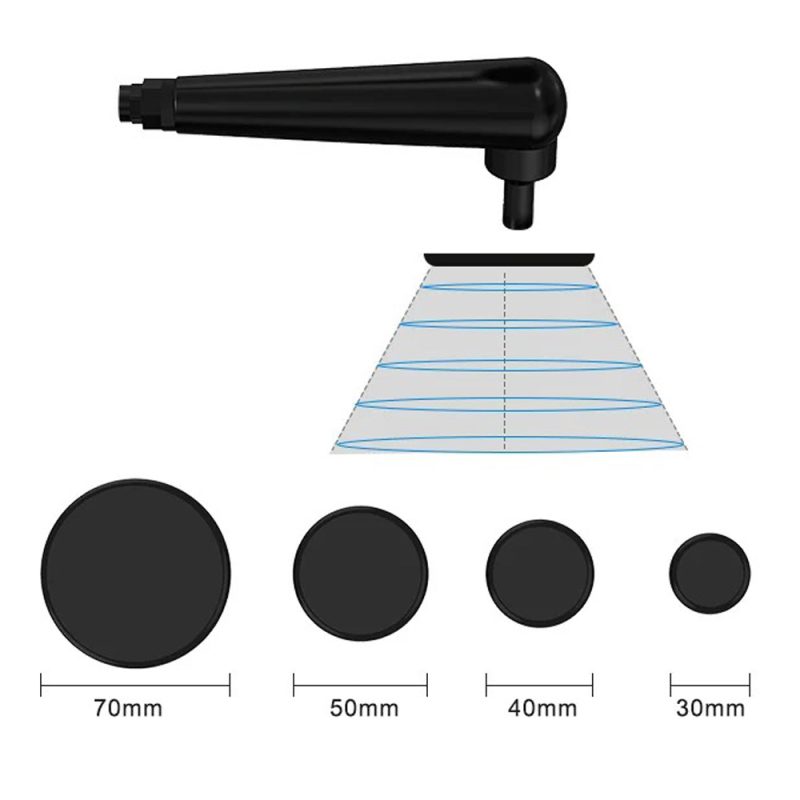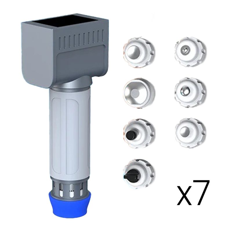 Pièce à main pour ondes de choc avec 7 embouts différents.
