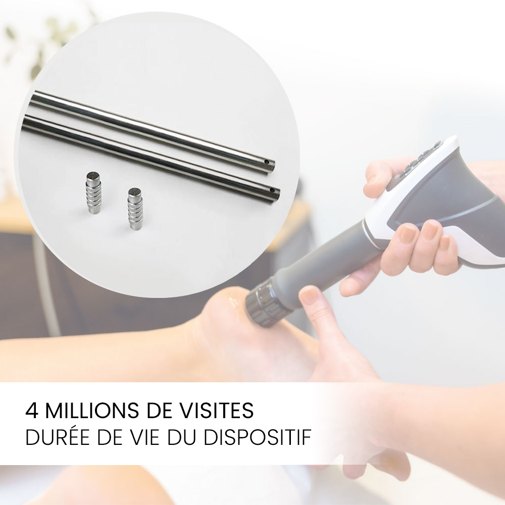 Chaque cartouche est conçue pour résister à jusqu’à 2 millions de coups, garantissant ainsi une durée de vie totale de l’appareil allant jusqu’à 4 millions de coups.