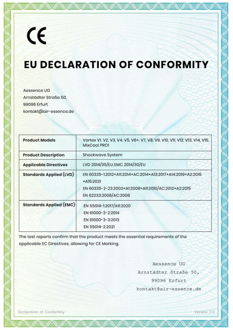 Nos appareils à ondes de choc répondent aux normes les plus strictes de qualité et de sécurité, comme en attestent les certifications prestigieuses suivantes :