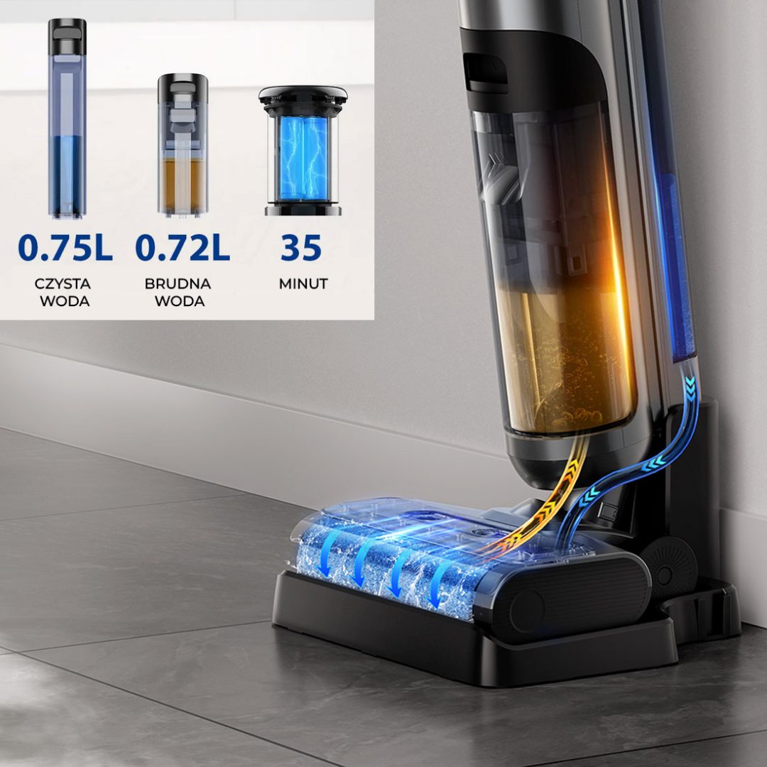 Le Monsun Drive est équipé de réservoirs de 750 ml pour l’eau propre et de 720 ml pour l’eau sale, ce qui permet de travailler longtemps sans interruptions. En mode ÉCO, la batterie permet jusqu’à 40 minutes d’utilisation. Que ce soit pour de grands espaces ou de longs couloirs, le Monsun Drive assure un nettoyage ininterrompu avec des résultats impeccables.