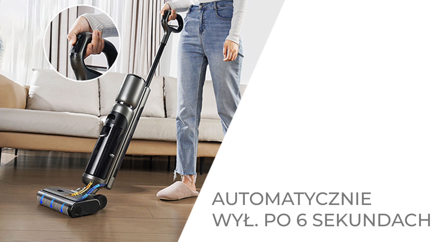 Technologie d’arrêt différé (l’appareil s’éteint 6 secondes après avoir appuyé sur le bouton) – un double système de sécurité avec une valve anti-retour et une technologie de retard automatique empêche le reflux de l’eau sale.