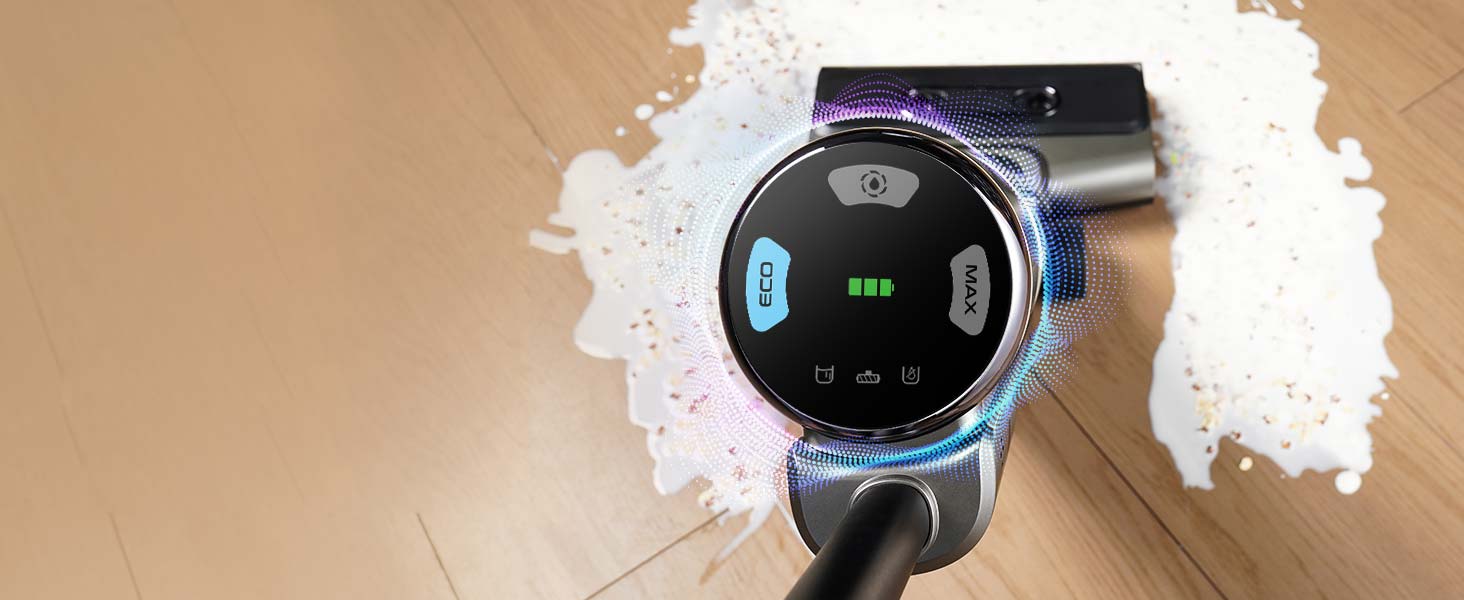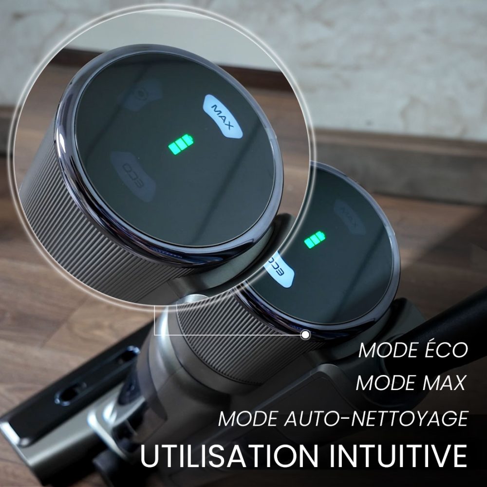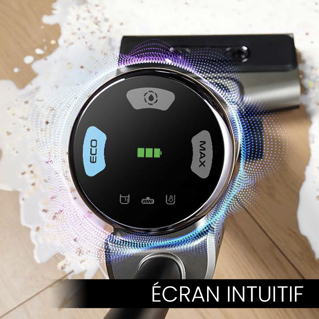 L’aspirateur Monsun Drive élève le nettoyage quotidien à un nouveau niveau. Grâce à son grand écran LED et à ses messages vocaux intelligents, l’utilisateur est informé en temps réel du niveau de batterie, du niveau de saleté du sol et du mode de fonctionnement. Ces fonctionnalités modernes facilitent le nettoyage tout en l’optimisant pour des résultats plus rapides et plus efficaces.