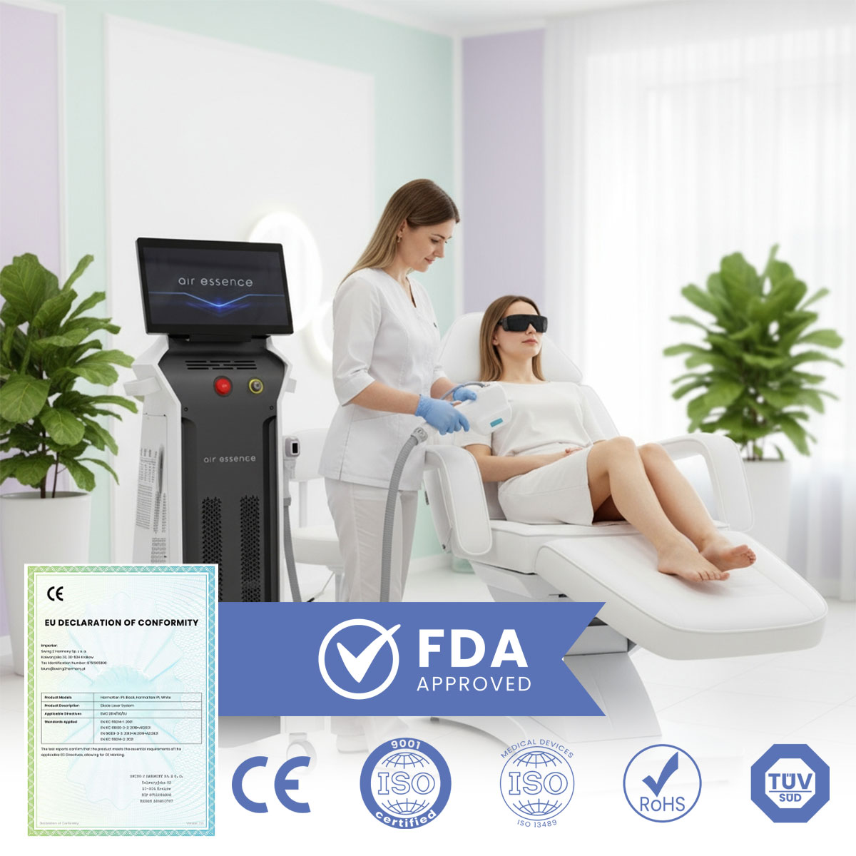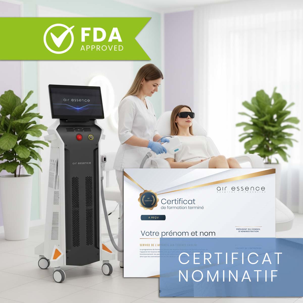 De plus, l’appareil est également certifié par la FDA, vous garantissant que vous investissez dans un équipement éprouvé et approuvé pour une utilisation sur les marchés mondiaux. C’est une garantie de fiabilité, de sécurité pour vos clients et de sérénité dans votre travail quotidien.
