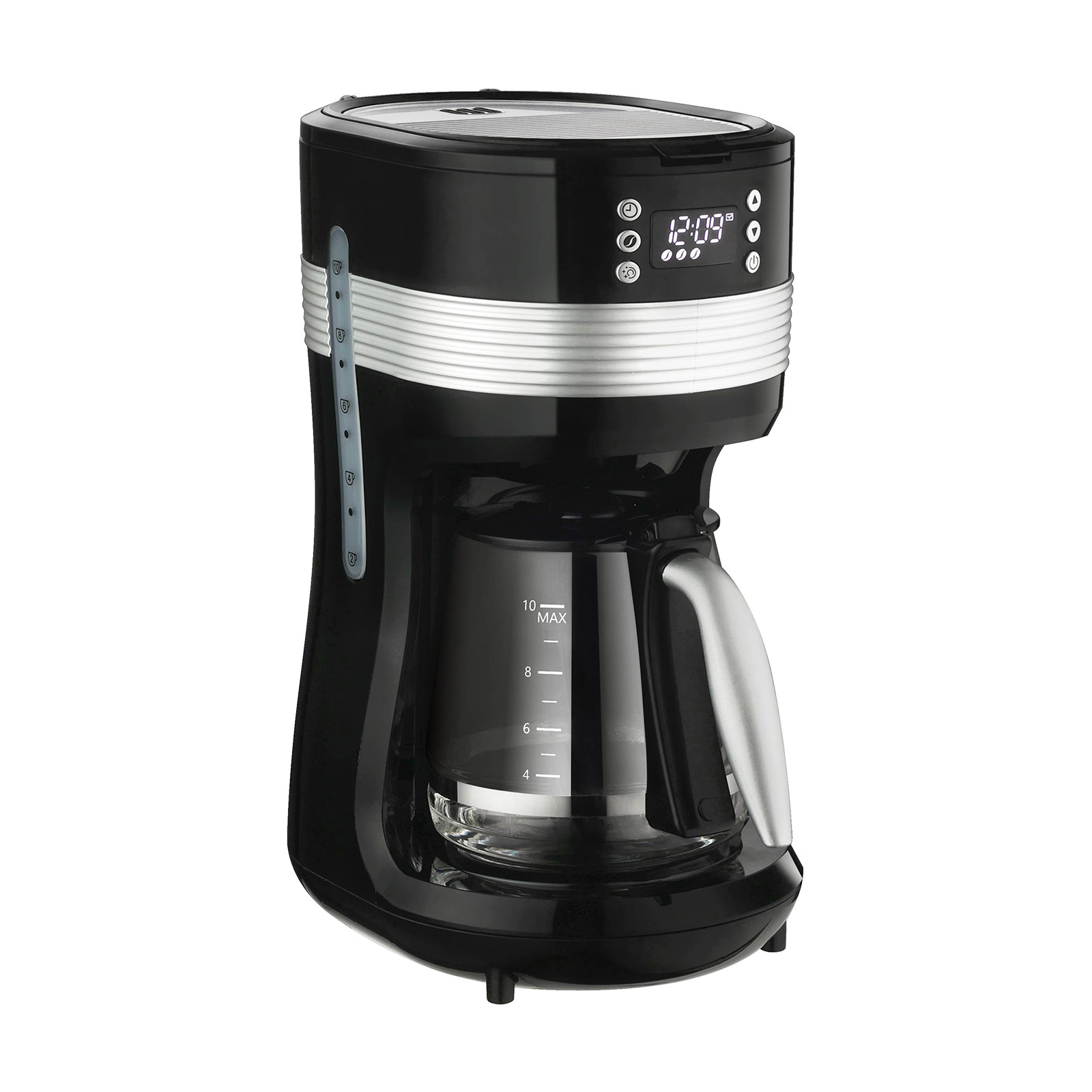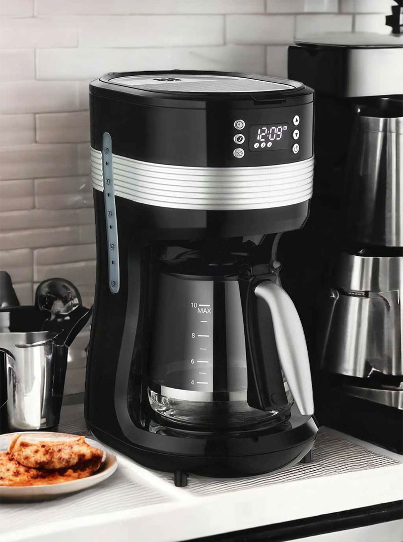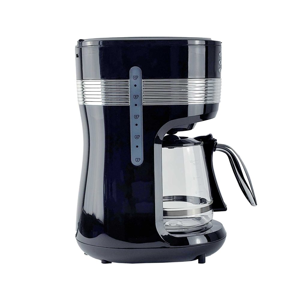 Das Gerät verfügt über ein Fenster zur Anzeige des Wasserstands, einen praktischen herausnehmbaren Filterbehälter sowie einen permanenten Filter, der leicht gereinigt werden kann. Darüber hinaus verfügt die Kaffeemaschine über eine Funktion zur Aufrechterhaltung der Kaffeetemperatur.