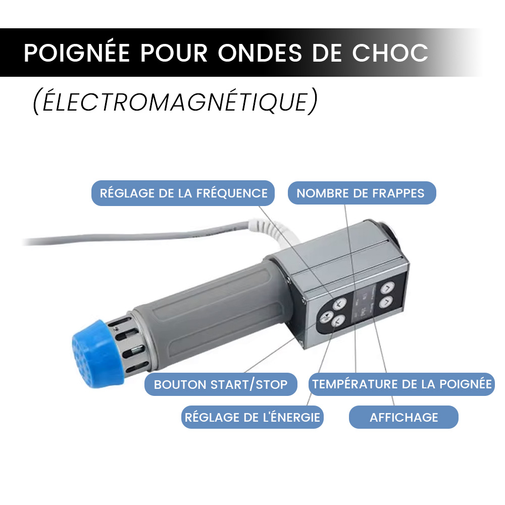 - Réglage de la fréquence et de l’énergie des impulsions via un écran lisible.